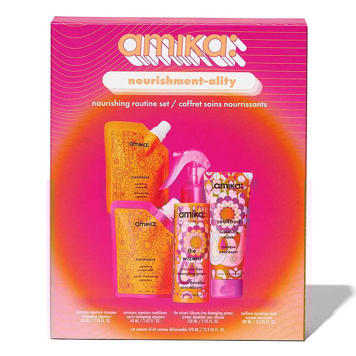 Oletko ravinnon tuulella, jonka voit nähdä ja tuntea? Nourishment-ality Nourishing Routine -sarja puhdistaa, hoitaa ja selvittää hiukset Normcore Shampoo and Conditionerilla, matkakokoisella Soulfood Nourishing Mask -naamiolla ja täysikokoisella The Wizard Silikonittomalla Detangling Primerilla.
