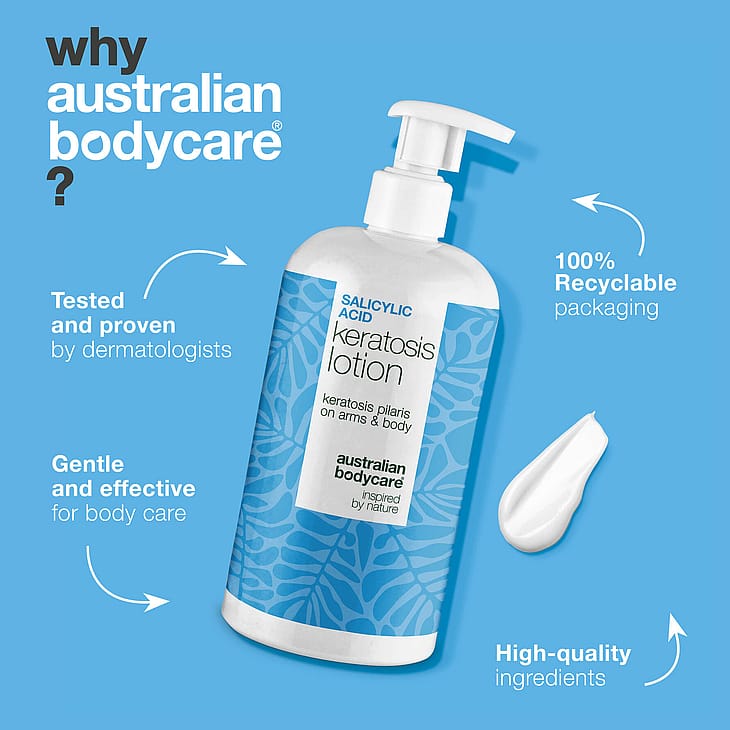 Siksi Australian Bodycarella olemme kehittäneet erityisesti kehitetyn vartalovoiteen, joka on suunniteltu lievittämään ja vähentämään keratosis pilariksen oireita tehokkaasti – käyttäen luonnosta ja todistetusta tieteestä inspiroituneita aktiivisia ainesosia.