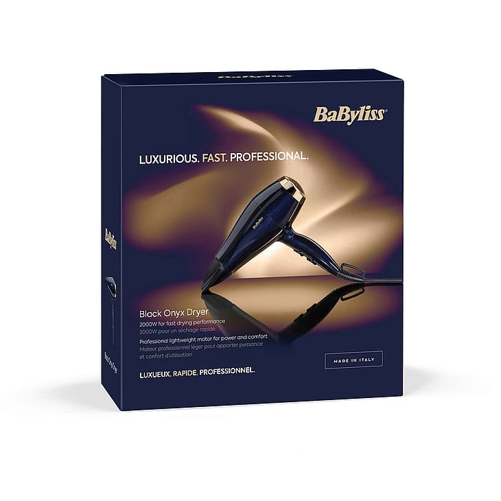 Italialainen Black Onyx Dryer 2000 W:n moottorilla ammattimaiseen suorituskykyyn, tasaiseen lopputulokseen ja kestävään viimeistelyyn.