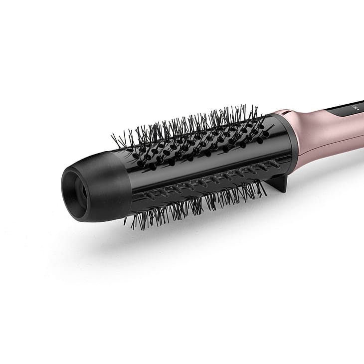Silikonia ja antistaattisia harjaksia sisältävä yhdistelmä liukuu vaivattomasti hiusten läpi luoden hellävaraisen jännitteen sileää ja vaivatonta muotoilua varten. Kohottaa tyvestä ja muotoilee hiukset latvaan asti sileiksi ja kiiltäviksi.
