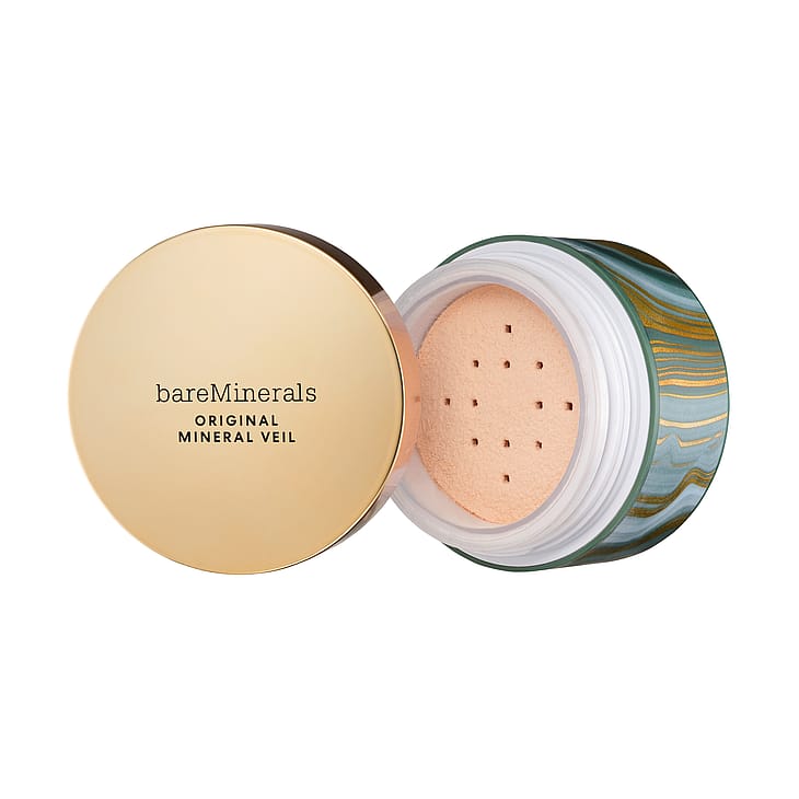 Tutustu bareMinerals limited edition Deluxe Original Mineral Veil® Loose Setting Powder -jauheeseen – ylelliseen, läpikuultavaan irtopuuteriin jumbo-koossa, joka kiinnittää meikin, pidentää sen kestoa ja häivyttää ihohuokosia sekä juonteita kauniin luonnollisen lopputuloksen saavuttamiseksi.