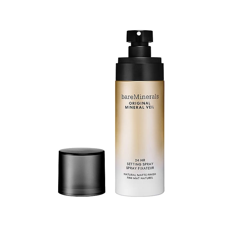 bareMinerals Original Mineral Veil 24HR Matte Setting Spray -meikkisuihke pidentää meikin kestoa 24 tuntia ja hylkii vettä ja hikeä. Valmistettu 95 % ihonhoitoaineista, tämä alkoholiton koostumus myös kosteuttaa ja jättää iholle mattapinnan. Ihoa parantavat tehoaineet vähentävät juonteita ja huokosia sekä kirkastavat ja silottavat ihoa - välittömästi ja pitkäkestoisesti.