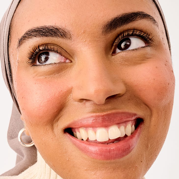 Pyöräytä sivellintä poskipunassa ja levitä poskille. Häivytä ja kerrosta haluamallasi tavalla meikittömille kasvoille tai meikin päälle.