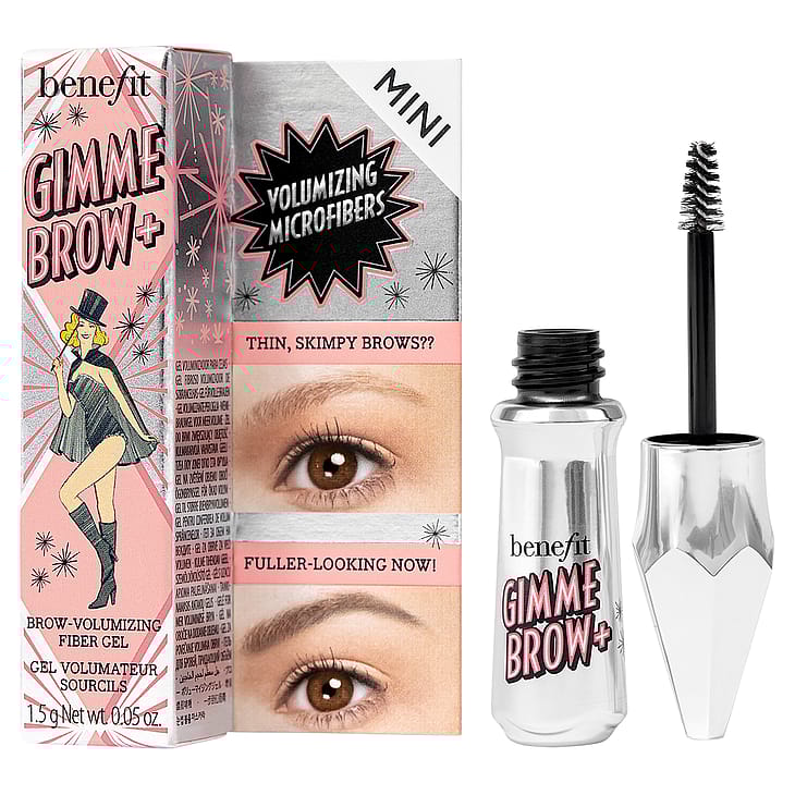 Benefitin Gimme Brow+ Volumizing Eyebrow Gel sisältää pienenpieniä mikrokuituja, jotka kiinnittyvät ihoon ja kulmakarvoihin ja antavat luonnollista tuuheutta. Varta vasten suunniteltu pikkuruinen harja auttaa levittämään tuotetta siististi. Sen avulla on helppo kesyttää, värittää ja tuuheuttaa kulmakarvoja. Kerroksittain levitettävä tuote on myös vedenkestävä ja pitkäkestoinen.