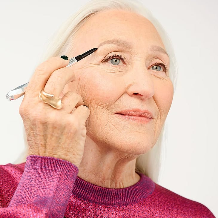 • Terävällä kärjellä voit muotoilla kulmakarvan ulkonurkan ”siiven”. Kevyt kosketus riittää.