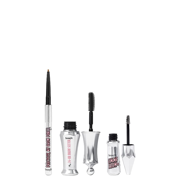 Rajaa, tuuheuta ja kiinnitä kulmakarvasi kolmella Benefitin suosituimmalla tuotteella kätevissä pakkauksissa.