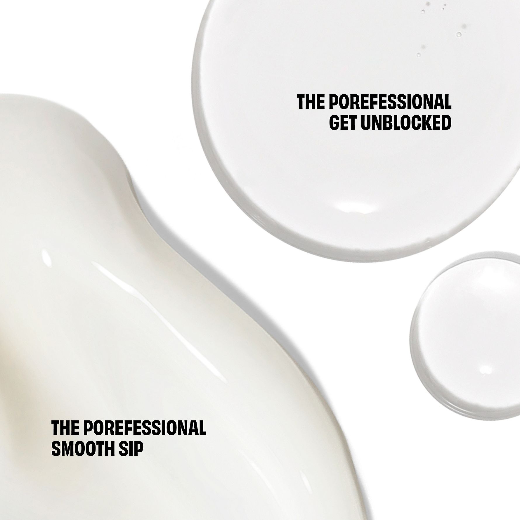 The POREfessional Get Unblocked : CAPRYLIC/CAPRIC TRIGLYCERIDE, SIMMONDSIA CHINENSIS (JOJOBA) SEED OIL, PEG-40 SORBITAN PEROLEATE, PERSEA GRATISSIMA (AVOCADO) OIL, VITIS VINIFERA (GRAPE) SEED OIL, 1, 2-HEXANEDIOL, CAPRYLYL GLYCOL, PARFUM (FRAGRANCE), BISABOLOL, PRUNUS DOMESTICA SEED OIL, TRIETHYL CITRATE, TOCOPHEROL, CERAMIDE NP, TOCOPHERYL ACETATE, PENTAERYTHRITYL TETRA-DI-T-BUTYL HYDROXYHYDROCINNAMATE. N° 17004 The POREfessional Smooth Sip : AQUA (WATER), PROPANEDIOL, GLYCERIN, NIACINAMIDE, CAPRYLIC/CAPRIC TRIGLYCERIDE, CELLULOSE, SQUALANE, MALTITOL, AMMONIUM ACRYLOYLDIMETHYLTAURATE/VP COPOLYMER, ACRYLATES/C10-30 ALKYL ACRYLATE CROSSPOLYMER, CHLORPHENESIN, HYDROXYACETOPHENONE, BISABOLOL, XANTHAN GUM, PARFUM (FRAGRANCE), ALOE BARBADENSIS LEAF JUICE, SODIUM HYDROXIDE, SCLEROTIUM GUM, SORBITAN TRIOLEATE, HYDROGENATED LECITHIN, PULLULAN, BUTYLENE GLYCOL, PENTYLENE GLYCOL, PHENETHYL ALCOHOL, SACCHARIDE ISOMERATE, SILICA, APIUM GRAVEOLENS (CELERY) SEED EXTRACT, SPHINGOLIPIDS, SPHINGOMONAS FERMENT EXTRACT, LINUM USITATISSIMUM (LINSEED) SEED EXTRACT, CITRIC ACID, PENTAERYTHRITYL TETRA-DI-T-BUTYL HYDROXYHYDROCINNAMATE, SODIUM CITRATE, TOCOPHEROL. N° 16590