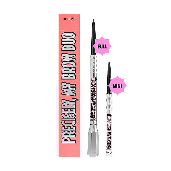 Hanki kaksi Benefitin hittituotetta tässä rajoitetun painoksen The Precisely, My Brow Pack -sarjassa. Tämä täysikokoinen duo tekee kulmien määrittelystä ja muotoilusta vaivatonta. Benefit kulmakynä, Precisely, My Brow Pencil tekee hiuksia muistuttavia vedoksia, jotka kestävät jopa 12 tuntia*. Precisely, My Brow Wax muotoilee ja pitää kulmakarvat rauhallisina, mutta runsaalla ja rohkealla värillä.