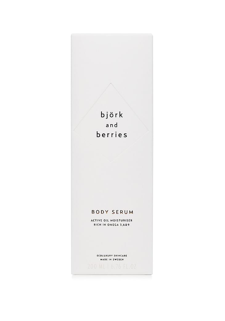Tämä aktivoiva vartaloseerumi kosteuttaa tehokkaasti tehokuurina tai päivittäin käytettynä. Tiivistetty öljypohjainen seerumi sisältää purasruohon siemenöljyä, auringonkukansiemenöljyä, orgaanista koivunlehtiuutetta ja jojobansiemenöljyä. Yhdistelmä kosteuttaa syvältä ja elvyttää ihoa. Seerumi sisältää runsaasti omega 3, 6- ja 9-rasvahappoja ja E-vitamiinia, joka on luonnollinen antioksidantti, joten se hoitaa ja suojaa ihoa kuivumiselta. Seerumi imeytyy helposti ja antaa iholle välittömästi kosteutta ja hehkua koko päiväksi.