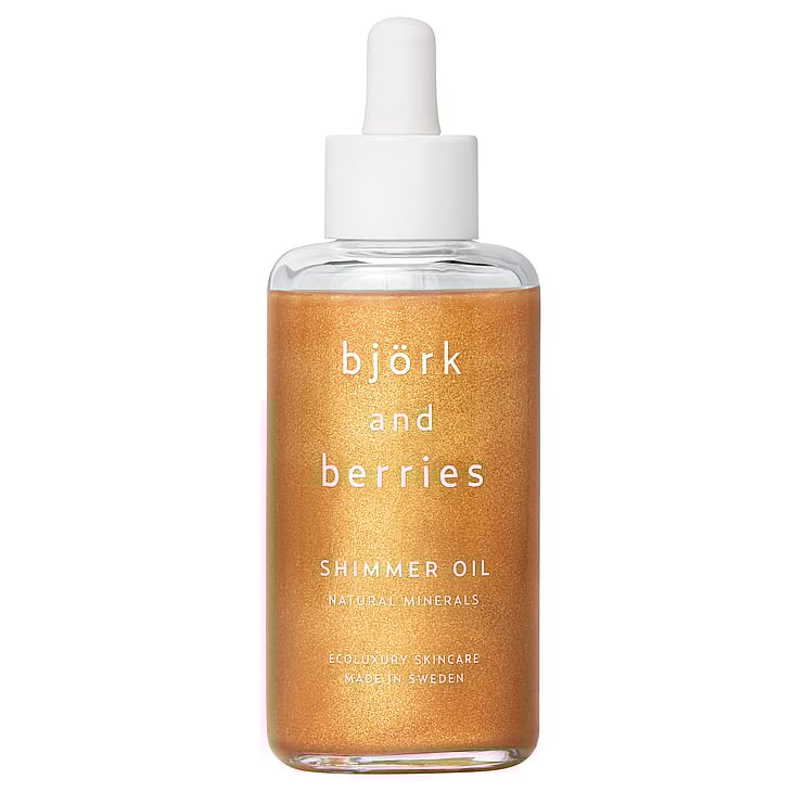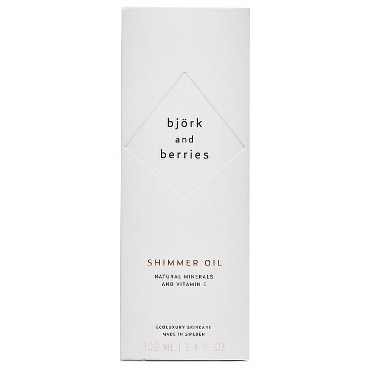 Luonnollisen kevyt ja nopeasti imeytyvä, hehkuva Shimmer oil on rikastettu koivu-uutteella ja luonnollisilla mineraaleilla. Ravitseva sekoitus kosteuttavia ja pehmentäviä öljyjä ja E-vitamiinia, jotka suojaavat ihoa vapailta radikaaleilta ja luovat kullanvärisen hehkun.