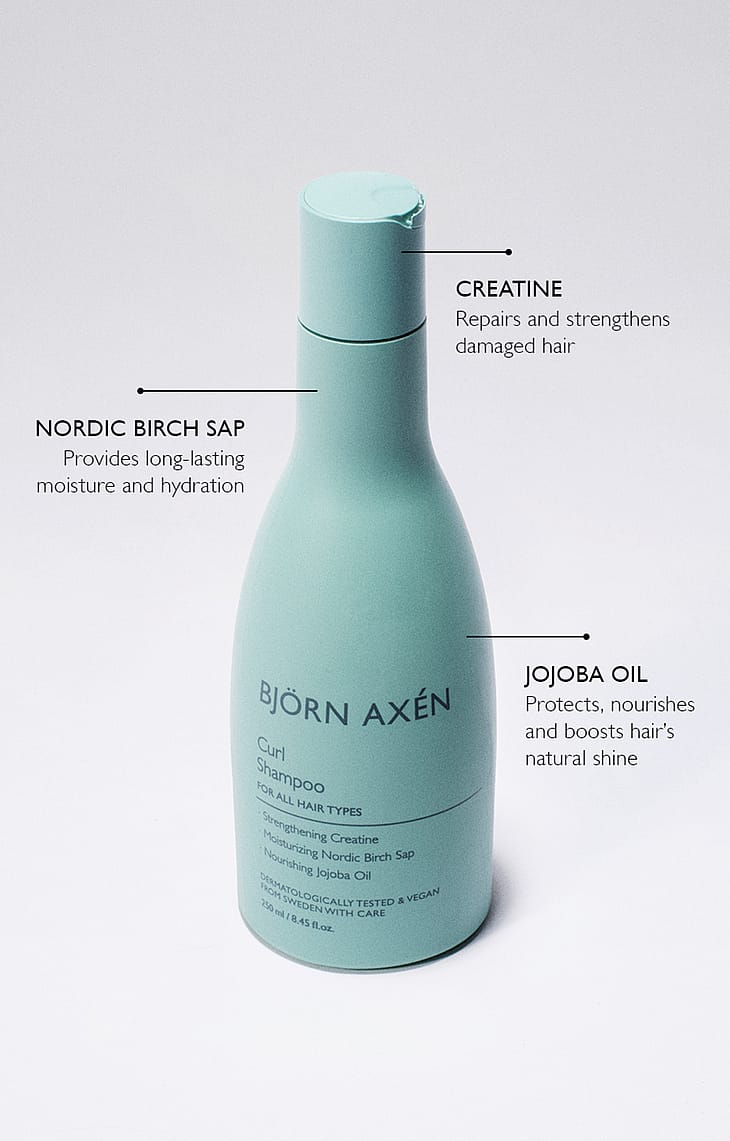 Levitä kosteisiin hiuksiin ja hiuspohjaan. Vaahdota hierovin liikkein ja huuhtele huolellisesti. Pese hiukset shampoolla toisen tai useammankin kerran saadaksesi hiuksille syväpuhdistuksen ja runsaamman vaahdonmuodostuksen. Käytä yhdessä Björn Axén Curl Conditionerin tai Hair Maskin kanssa tehostaaksesi kiharoita erottelevaa vaikutusta.