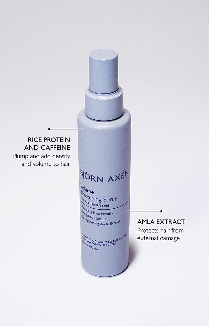 Levitä pyyhekuiviin tai kuiviin hiuksiin keskittyen tyveen saadaksesi lisää volyymia. Kampaa hiukset, jotta tuote jakautuu tasaisesti. Muotoile haluamallasi tavalla. Saat parhaan tuloksen föönaamalla. Käytä yhdessä muiden Björn Axén Volume -sarjan tuotteiden kanssa tehostaaksesi tuuheuttavaa vaikutusta.