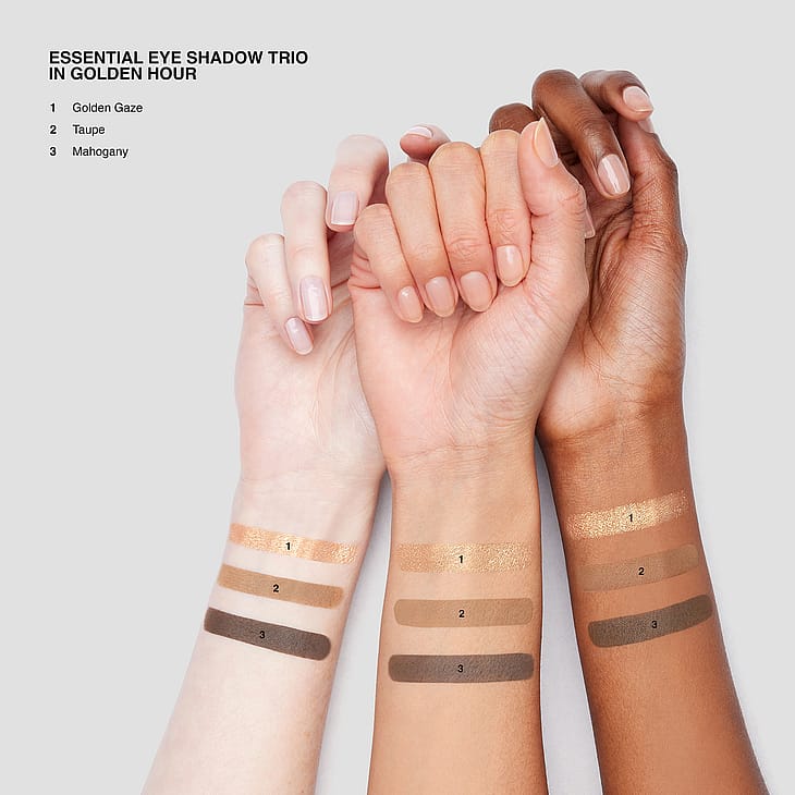 Essential Eyeshadow Trio on luomiväripaletti, joka koostuu kolmesta taiteellisesta sävystä, jotka korostavat, varjostavat ja määrittävät luonnollisesti, joten sinulla on kaikki, mitä tarvitset katseesi korostamiseen, helposti.
