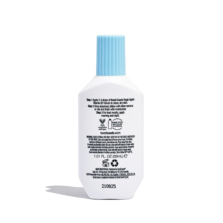 Begin Again Vitamin B3 Serum on seerumi, joka auttaa ihoa uusiutumaan ja tekemään siitä tasaisemman. Nopeasti imeytyvä koostumus sisältää mm. sinkkiä ja australianmausteneilikkaa, jotka tekevät ihosta kirkkaamman ja hyvinvoivan näköisen. Sopii kaikille ihotyypeille, myös herkälle iholle. Vegaaninen.