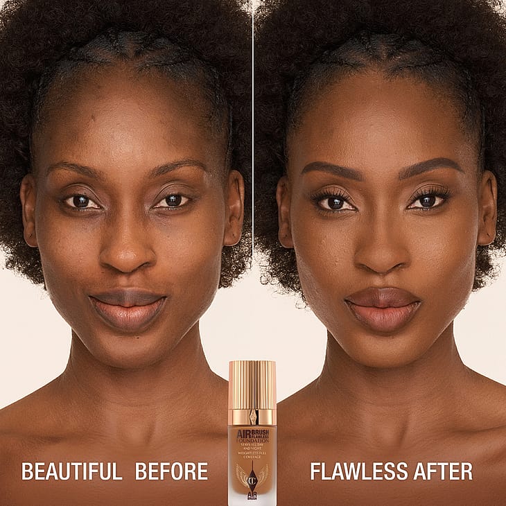 Charlotten palkittu Airbrush Flawless Foundation on nyt UUDISTUNUT SEURAAVAA SUKUPOLVEA varten! Tämä koko päivän pysyvä, erittäin kevyt ja täysin peittävä koostumus tarjoaa jopa 24 TUNNIKSI* toiselta iholta tuntuvan 3D-mattapinnan, mikä mahdollistaa ennennäkemättömän silottavan, ihohuokosia häivyttävän airbrush-vaikutuksen! Tehoja tarjoaa Charlotten 7-in-1 AIRBRUSH SKIN MIRACLE, joka sisältää Biomimetic Second-Skin Tech™-, Powder Blur AirTech™- ja Phytoyouth Essence™ Time Machine Extract -ratkaisut ja jolla saat sileämmältä, kiinteämmältä ja nuorekkaammalta näyttävän ihon jokaisella käyttökerralla!
