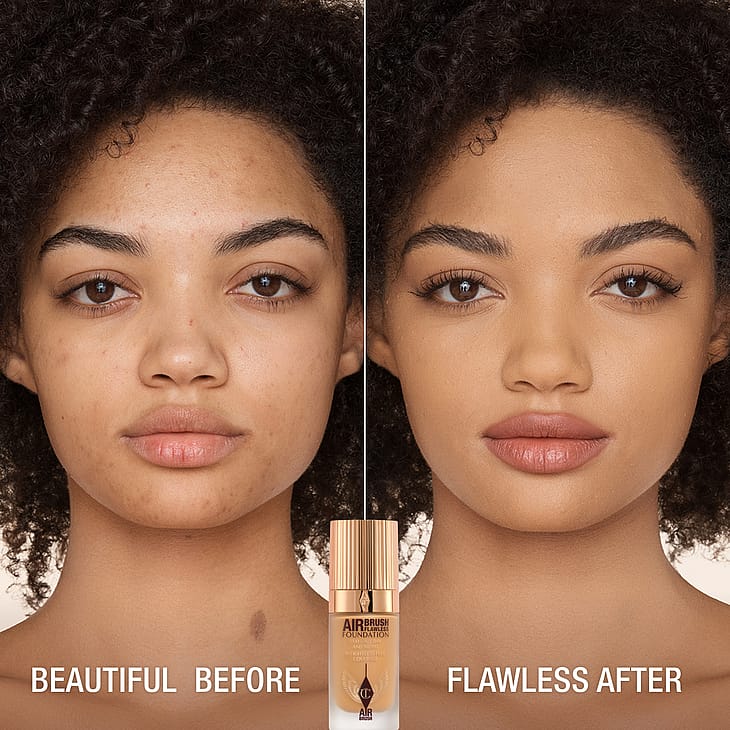 Charlotten palkittu Airbrush Flawless Foundation on nyt UUDISTUNUT SEURAAVAA SUKUPOLVEA varten! Tämä koko päivän pysyvä, erittäin kevyt ja täysin peittävä koostumus tarjoaa jopa 24 TUNNIKSI* toiselta iholta tuntuvan 3D-mattapinnan, mikä mahdollistaa ennennäkemättömän silottavan, ihohuokosia häivyttävän airbrush-vaikutuksen! Tehoja tarjoaa Charlotten 7-in-1 AIRBRUSH SKIN MIRACLE, joka sisältää Biomimetic Second-Skin Tech™-, Powder Blur AirTech™- ja Phytoyouth Essence™ Time Machine Extract -ratkaisut ja jolla saat sileämmältä, kiinteämmältä ja nuorekkaammalta näyttävän ihon jokaisella käyttökerralla!
