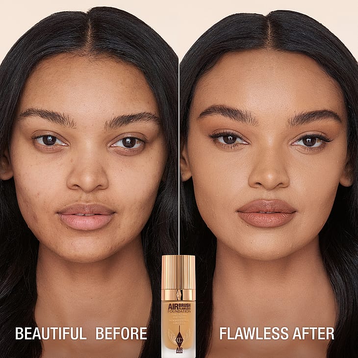 Charlotten palkittu Airbrush Flawless Foundation on nyt UUDISTUNUT SEURAAVAA SUKUPOLVEA varten! Tämä koko päivän pysyvä, erittäin kevyt ja täysin peittävä koostumus tarjoaa jopa 24 TUNNIKSI* toiselta iholta tuntuvan 3D-mattapinnan, mikä mahdollistaa ennennäkemättömän silottavan, ihohuokosia häivyttävän airbrush-vaikutuksen! Tehoja tarjoaa Charlotten 7-in-1 AIRBRUSH SKIN MIRACLE, joka sisältää Biomimetic Second-Skin Tech™-, Powder Blur AirTech™- ja Phytoyouth Essence™ Time Machine Extract -ratkaisut ja jolla saat sileämmältä, kiinteämmältä ja nuorekkaammalta näyttävän ihon jokaisella käyttökerralla!