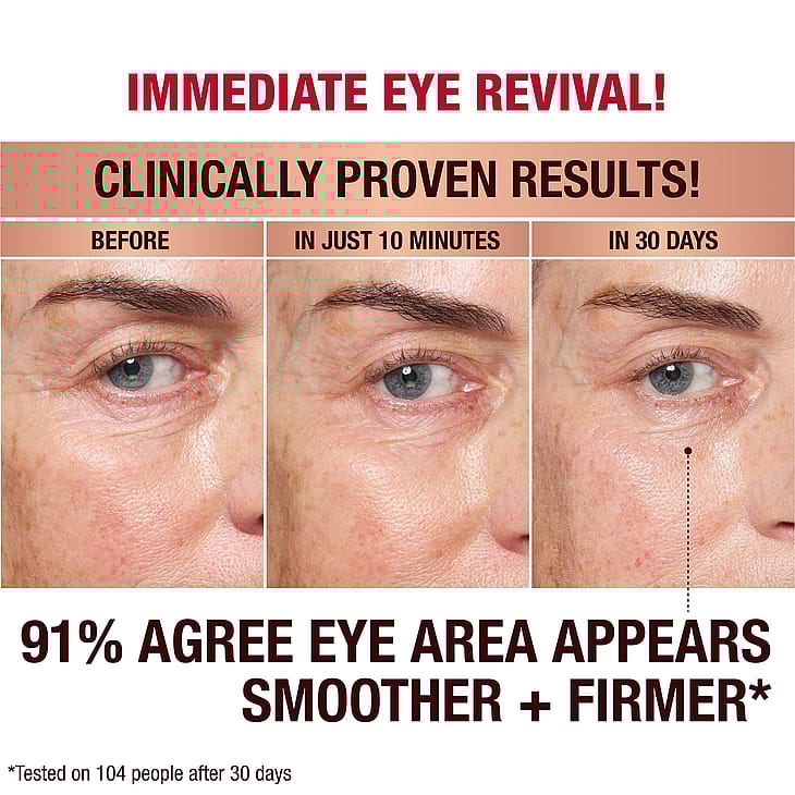Immediate Eye Revival Patches kosteuttaa ja sileyttää hienojen juonteiden esiintymistä, ja poistaa turvotusta silmänalusista ja vähentää tummien silmänalusten esiintymistä! Jäähdyttävä hydrogeelityyny on suunniteltu liukumattomaksi ja valumattomaksi, ja se mukautuu kasvojen muotoihin luoden välittömän silmänympärysihon kohottavan vaikutuksen. Se on Charlotten takahuonesalaisuus kirkkaampaan, kosteutetumman ja sileämmän näköiseen ihoon vain 10 minuutissa!