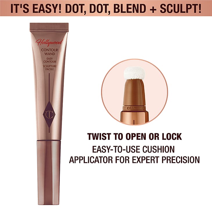 Charlotten kerrostettava ja häivytettävä voidemainen muotoilumeikkipuikko on salaisuus muokattuihin punaisen maton poskipäihin sekunneissa! Helppokäyttöisessä puikossa on virheitä estävä, helposti lukittava tyynyapplikaattori, jolla voit hallita levitystä ja muokata piirteitäsi. Levitä, häivytä ja muokkaa!