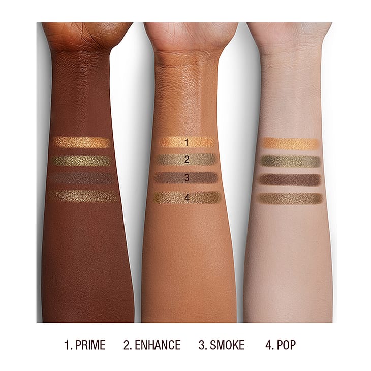 Tehosta ilmettä! Iltailmeen luomiseksi toista kaksi ensimmäistä vaihetta, ja käytä sitten Eye Smudger Brush -harjaa SMOKE-sävyn levittämiseen silmän ulkokulmasta ylöspäin luomivakoon. Levitä luomivakoon ja kauttaaltaan koko ylempään ja alempaan ripsilinjaan.