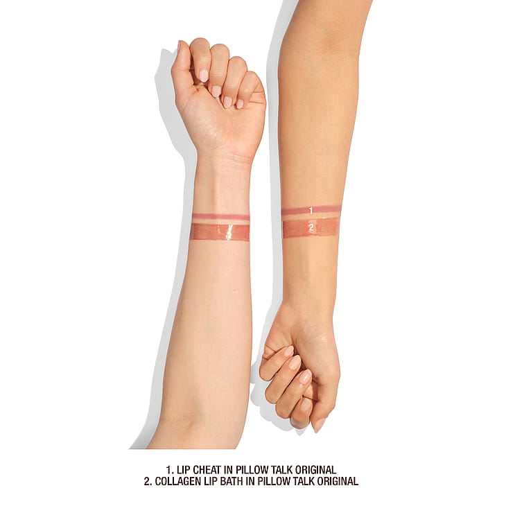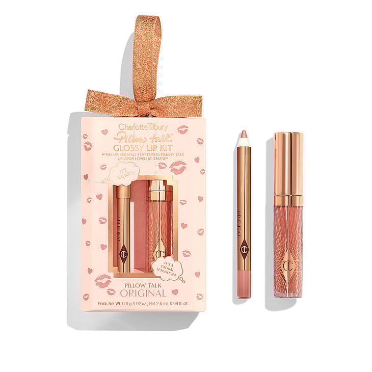 Saavuta täydelliset nude-pinkin sävyiset huulet Charlotten ikonisella Lip Cheat -huulipunalla ja ihonhoitoainesosia sisältävällä Collagen Lip Bathilla. Upea kaksikko, joka kosteuttaa, muokkaa ja antaa peilimäisen kiillon − kaikki pakattuna juhlavaan nauhalliseen joulupalloon, joka sopii kuuseen ripustettavaksi. Tähtien ja supermallien suosima Pillow Talk -huulten ilme sopii kaikille!