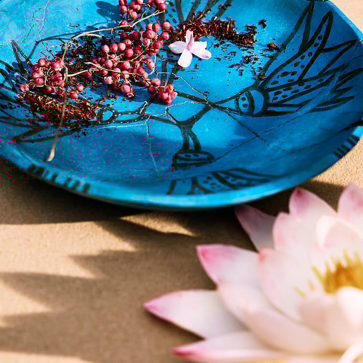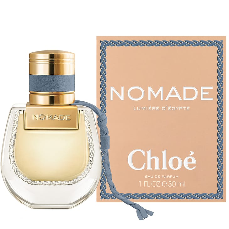 Chloé Nomade Lumière d’Égypte Eau de Parfum on kunnianosoitus Egyptille, Chloén perustajan Gaby Aghionin synnyinmaalle. Tuoksu on saanut inspiraationsa sinisestä lootuksesta, joka puhkeaa kukkaan aamunkoitteessa Niilin rannoilla, ja vangitsee viileän veden, vehreiden maisemien ja autiomaan kultaisen valon kohtaamisen. Kompositio avautuu pehmeillä ja ilmavilla sinisen lootuksen vivahteilla. Sydämessä tuoksua syventää jasmiini, joka tuo samettista kukkaista lämpöä. Vaaleanpunainen marja ja elemin eteerinen öljy tuovat mausteisen ja eläväisen sävyn, joka johdattaa pohjaan, jossa kyphi-akordi ottaa vallan – hienostunut sekoitus kanelinkuorta, santelipuuta ja mirhaa, muinaisen egyptiläisen hajuvesitaiteen inspiroimana. Pullo kantaa ikonista Nomade-siluettia kultaisten yksityiskohtien ja tummansinisen punotun nauhan koristamana – sinisen sävy, joka on saanut inspiraationsa egyptiläisestä lootuksesta.