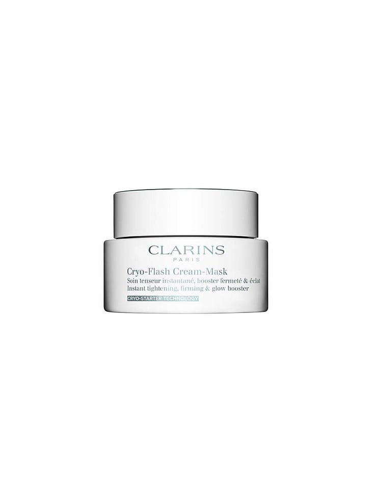 Cryo-Flash Cream-Mask on kryoterapiasta inspiraationsa saanut erittäin tehokas anti-age-kasvonaamio, joka on luotu Clarins-asiantuntemuksen avulla. Saat näkyviä tuloksia jo ensimmäisen käyttökerran jälkeen – iho tuntuu kohotetulta, kiinteältä ja on hyvinvoivan hehkuva. Pehmeä, ultraraikas ja sinivihreä koostumus liukuu iholla kuin jää. Se antaa intensiivisen ja välittömän kryo-vaikutuksen, joka laskee ihon lämpötilaa -4°C*, mikä auttaa vastustamaan ikääntymisen merkkejä.