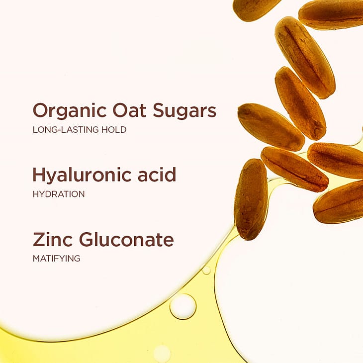 AQUA/WATER/EAU. CI 77891/TITANIUM DIOXIDE. METHYL TRIMETHICONE. DIMETHICONE. ALCOHOL. DICAPRYLYL CARBONATE. ACRYLATES/DIMETHICONE COPOLYMER. BUTYLENE GLYCOL. PEG-9 POLYDIMETHYLSILOXYETHYL DIMETHICONE. PENTYLENE GLYCOL. CI 77492/IRON OXIDES. DIMETHICONE/PEG-10/15 CROSSPOLYMER. POLYGLYCERYL-3 POLYDIMETHYLSILOXYETHYL DIMETHICONE. SODIUM CHLORIDE. SILICA. PARFUM/FRAGRANCE. STEARALKONIUM HECTORITE. AVENA SATIVA (OAT) KERNEL EXTRACT. GLYCERIN. ALUMINUM HYDROXIDE. HYDROLYZED HYALURONIC ACID. TRIETHOXYCAPRYLYLSILANE. CI 77491/IRON OXIDES. ETHYLHEXYLGLYCERIN. TOCOPHERYL ACETATE. PROPYLENE CARBONATE. CI 77499/IRON OXIDES. DISODIUM EDTA. MICA. HYDROXYETHYL UREA. DIPROPYLENE GLYCOL. SODIUM BENZOATE. ZINC GLUCONATE. TETRAMETHYL ACETYLOCTAHYDRONAPHTHALENES. MARRUBIUM VULGARE EXTRACT. PHENOXYETHANOL. SODIUM CITRATE. ALGIN. ACACIA SENEGAL GUM. PHENETHYL ALCOHOL. LINALYL ACETATE. TOCOPHEROL. FURCELLARIA