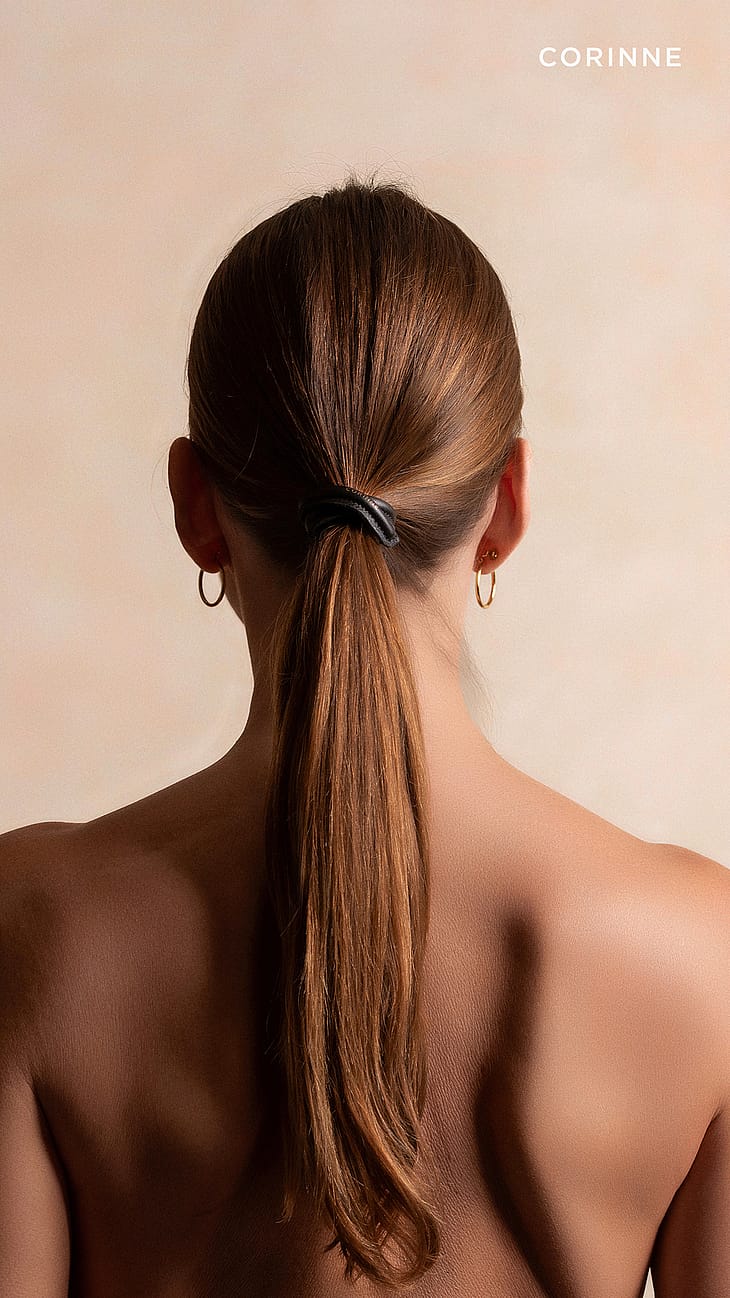 Jos haluat jotain enemmän kuin vain tavallisen hiuslenkin, tämä on yksi vaihtoehto valikoimastamme! Lyhyt ja kapea, taipuisa nahkainen lenkki antaa poninhännällesi erittäin tyylikkään ilmeen. Kiinnitä se hiuslenkillä ja taivuta se poninhännän tai nutturan ympärille – todella yksinkertainen ja tyylikäs. Käsintehty Italiassa italialaisesta nahasta.