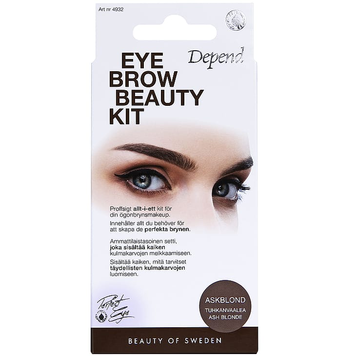 Depend Eyebrow Beauty Kit sisältää kaiken, mitä tarvitset täydellisten kulmakarvojen luomiseen: Kaksi eri sävyistä kulmaväriä, toinen värittämiseen ja toinen korjaamiseen, kaksi korostusväriä korostukseen ja hohdetta antamaan sekä vaha viimeistelyyn ja kiinnitykseen. Settiin sisältyy myös siveltimiä ja levitin. Mukana on neljä erilaista mallia, joilla saat kulmille täydellisen muodon.