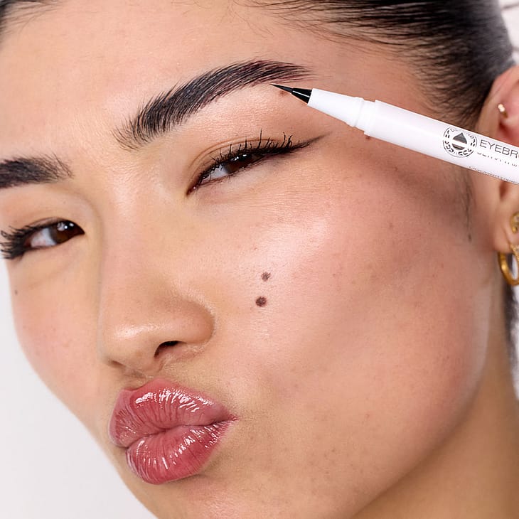 Piirrä kevyin ja joustavin liikkein. Valitse itse, kuinka paljon piirrettyjä karvoja haluat lisätä kulmiisi. Muotoile, rajaa ja täytä. Helppo poistaa lämpimällä vedellä. Vegaaninen koostumus. INFO: Jos käytät kynän kanssa muita kulmakarvojen stailaustuotteita, kuten vahaa tai geeliä, kynän sävy voi muuttua hieman. Tämä on yksilöllistä. Toiset havaitsevat sävyeron, toiset taas eivät. Jos huomaat eron, voit poistaa värin helposti tavallisella meikinpoistoaineella.