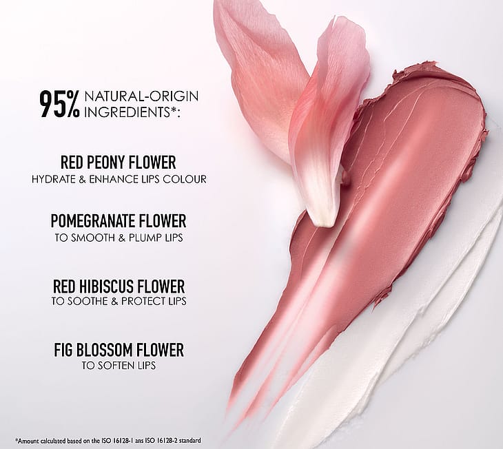Kuten Rouge Dior -huulibalsami myös täyttöpakkauksen voide on valmistettu 95 % luonnosta peräisin olevista ainesosista. Punaisen pionin, viikunan, hibiskuksen ja granaattiomenan kukan tiivistetyt kukkauutteet hellivät huuliasi. Värillinen Rouge Dior -huulivoide kosteuttaa huulia 24 tunnin ajan ja tekee niistä kauniimmat jättäen niille luonnollisen satiinisen, matan tai samettisen pinnan.