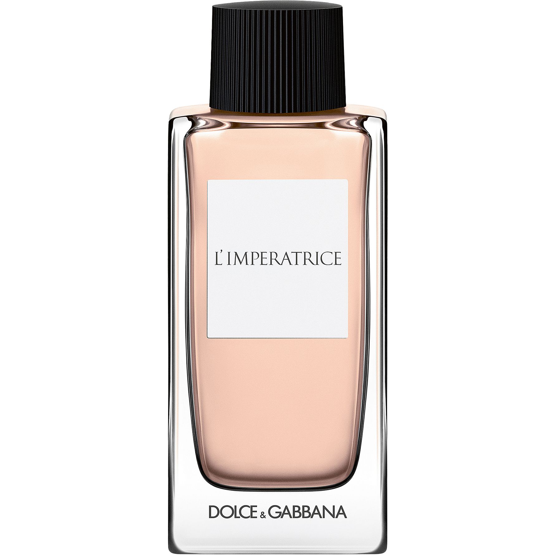 Tyylipuhdas, yksinkertainen ja läpikuultava Dolce&Gabbana L’Imperatrice Eau de Toilette -pullo tuo elegantin vaaleanpunaisen sävyn keskiöön, mikä korostaa tuoksun voimakasta naisellisuutta. Lineaarista lasipulloa koristaa minimalistinen musta korkki.