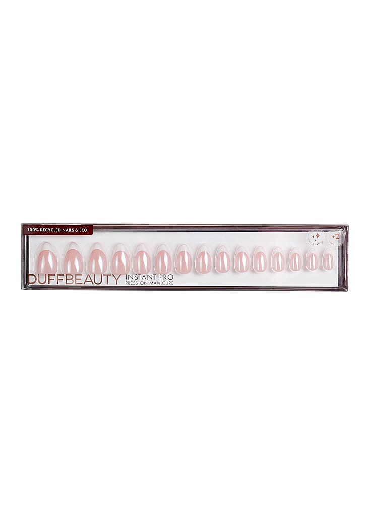 DUFFBEAUTYn Instant Pro Press-On Manicure on suunniteltu geelipinnoitteella, joka antaa saman ulkonäön ja tunteen kuin ammattimaiset geelikynnet. Kauniilla painettavilla kynsillä on luonnollinen ilme ja mukava istuvuus, ja ne voidaan kiinnittää helposti kotona muutamassa minuutissa – kestäen jopa 2 viikkoa.