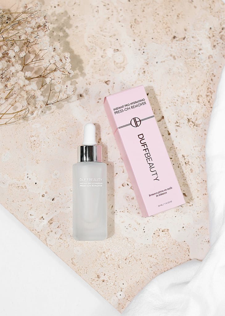 2. Tiputa 1–2 tippaa Instant Pro Remover -ainetta kynsien väliseen rakoon. Odota 5–7 minuuttia, kunnes poistoaine on imeytynyt ja liuottanut liiman.