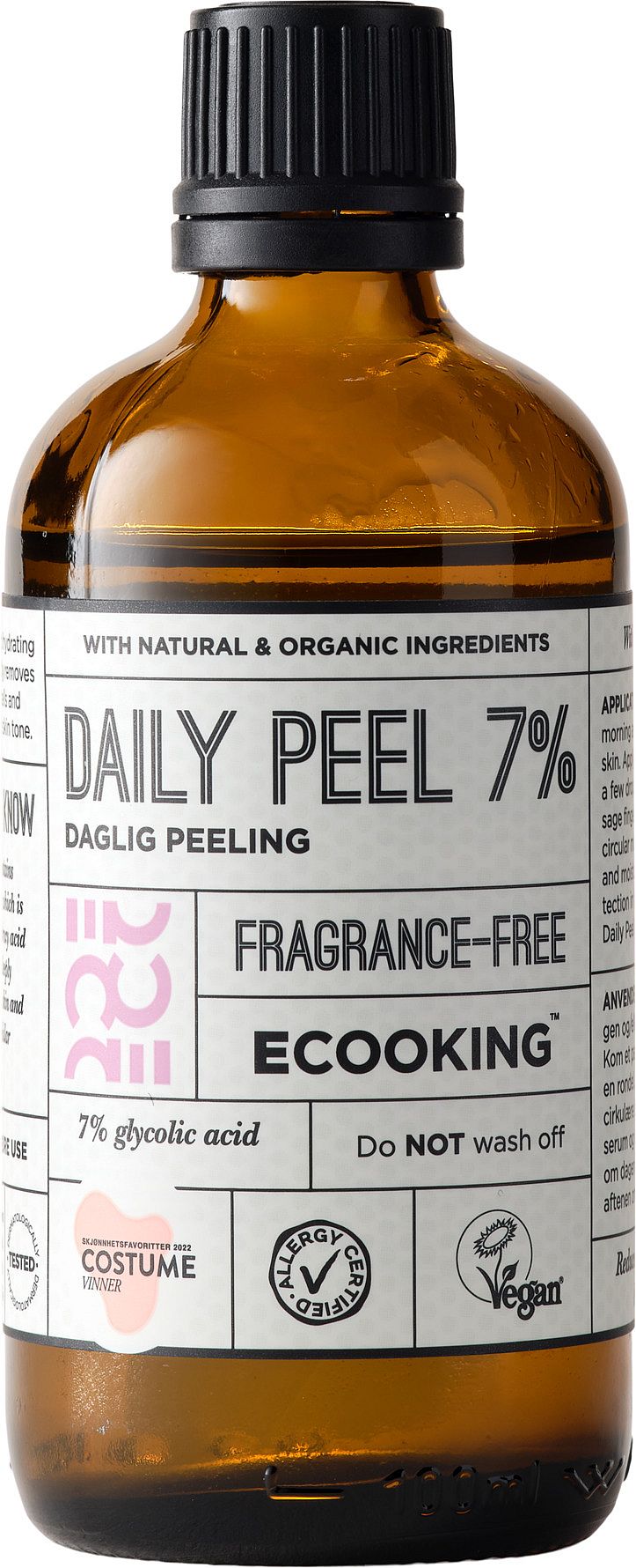 Käytä Daily Peel -kuorintaa aamulla ja/tai illalla puhdistetulle iholle. Voit levittää Daily Peeliä sormenpäilläsi tai laittaa muutaman tipan kostealle vanulapulle ja hieroa sitä varovasti iholle pyörivin liikkein. Voit käyttää Daily Peeliä myös paikallishoitona epäpuhtauksiin. Kun Daily Peel on imeytynyt kokonaan ihoon, levitä seerumi ja kosteusvoide.
