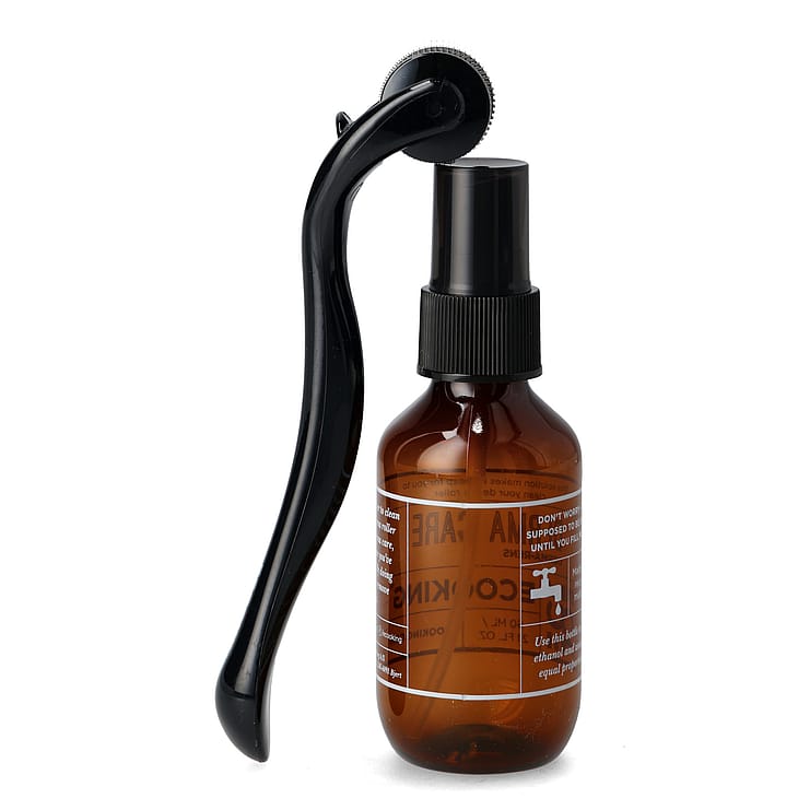 Huomautus: Kun ostat Derma Rollerin, mukana tulee tyhjä pullo Derma Rollerin puhdistamista varten. Sinun tulee täyttää se tavallisen talousalkoholin ja veden seoksella suhteessa 1:1.