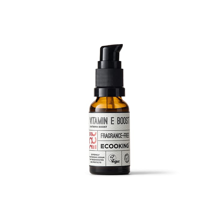 Tähän reseptiin Ecooking on lisännyt ylimääräistä E-vitamiinia, mikä takaa, että kun käytät Vitamin E Boost -voidetta, ihosi on entistäkin paremmin suojattu arjen rasituksia vastaan. Lisäksi E-vitamiini rauhoittaa ihoa ja auttaa sen uudistumisessa.