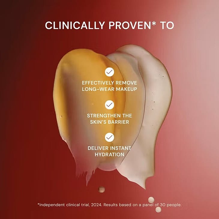 Lähde matkalle kolmen ylellisen koostumuksen läpi yhdessä tuotteessa. Runsas balmi sulaa ylelliseksi öljyksi, kun sitä hierotaan iholle, ja muuttuu kosteuttavaksi maitomaiseksi koostumukseksi kosketuksessa veden kanssa. Uniikki koostumus poistaa helposti pitkäkestoisen meikin, vahvistaa ihon suojakerrosta ja tuo välitöntä kosteutusta.* Sisältää kolmoisannoksen ravitsevia öljyjä – mehiläisystävällistä Starflower-öljyä, mustaherukkaa ja Optimega™-öljyä – sekä merellistä Padina Pavonicaa, ruusu- ja mimosavahaa. Hemmottele aistejasi puhdistamisen aikana, ja nauti lämmittävästä spa-kokemuksesta kotona. Koostumus on vapaa mineraaliöljyistä.