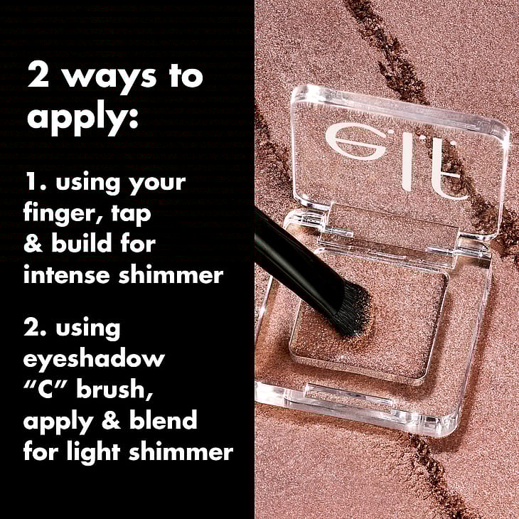 Läpikuultava, kimalteleva luomiväritopperi, joka on täynnä hienojakoisia glitterhiukkasia. Sitä voi käyttää sellaisenaan tai luomivärin päällä tuomaan pitkäkestoista säihkettä.