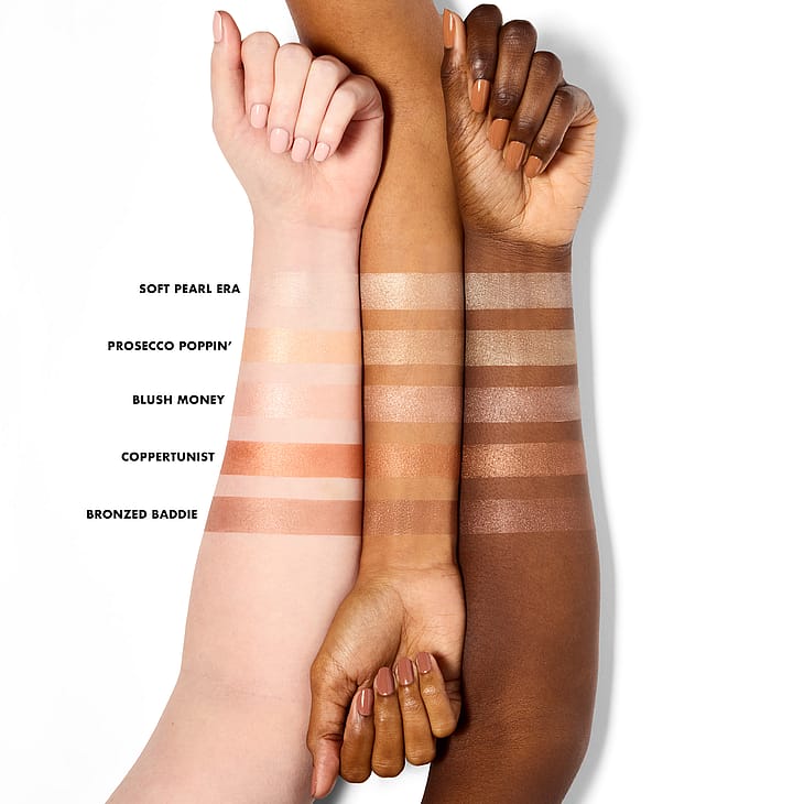 3. Lisää highlighteria siveltimellä kevyesti kasvon korkeimmille kohdille: poskipäille, kulmaluulle, amorinkaarelle tai muille alueille, joihin haluat lisätä hehkua.
