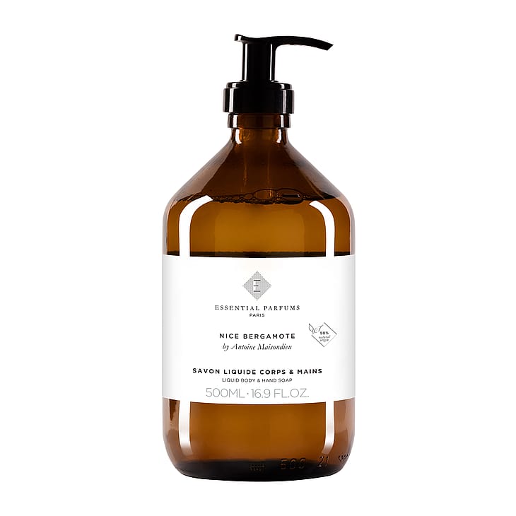 Nestemäinen vartalo- ja käsisaippua, joka on hienovaraisesti tuoksutettu Antoine Maisondieun Nizzan bergamotella - 98 % luonnollista.