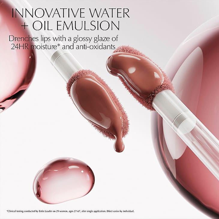 Tämä innovatiiviseen vesi + öljy -emulsioon perustuva huuliöljy antaa huulille kiiltävän pinnan ja hemmottelee samalla huulia tarjoamalla antioksidanttisuojan ja kosteutusta jopa 24 tunnin ajan. Huuliöljy tuo huulille näyttävää volyymia plumping-efektin avulla ja tarjoaa suojaa, mukavuutta sekä säteilevän kiillon. Koostumus sisältää 98-prosenttisesti ihoa hoitavia ainesosia, joista 38 % koostuu ravitsevista öljyistä. E-vitamiini antaa antioksidanttisuojaa ja hyaluronihappo kosteuttaa huulia tehokkaasti.