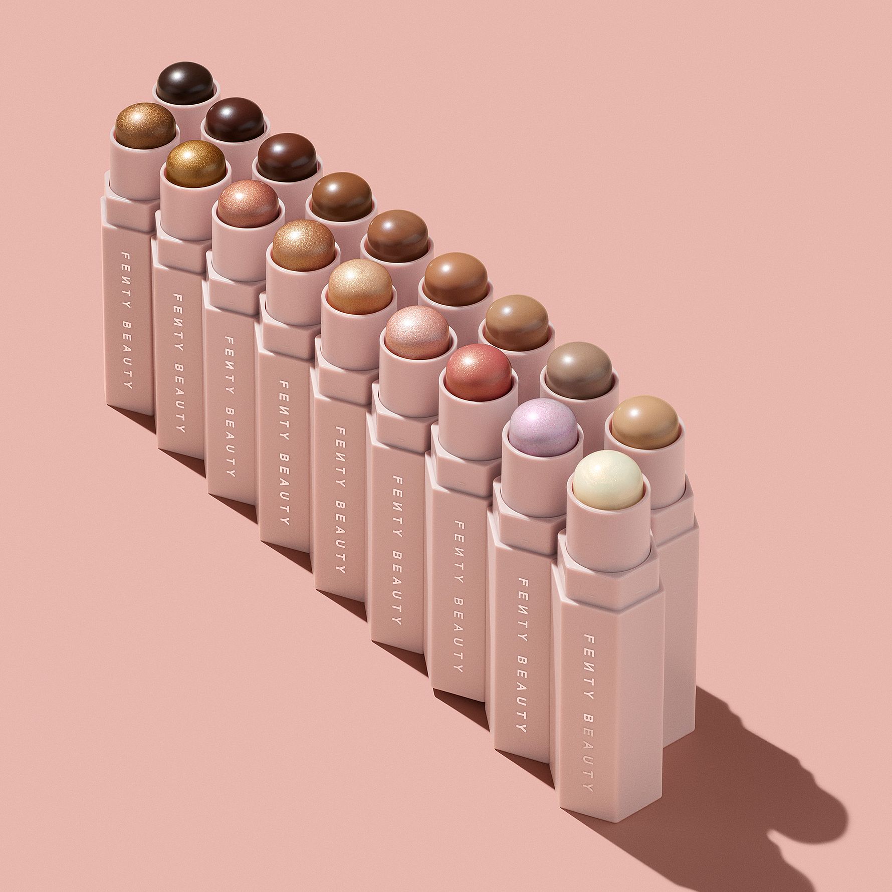 Fenty Facen toinen vaihe on korostus. Match Stix -tuotteet on täydelliset kerrostamiseen: levitä Shimme-korostuspuikkoa kasvoille ja häivytä sormin tai siveltimellä.