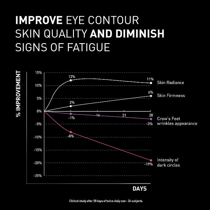 Tummat silmänalukset häivyttyivät 19 % ja saivat 11 % enemmän hehkua 28 päivän jälkeen.*