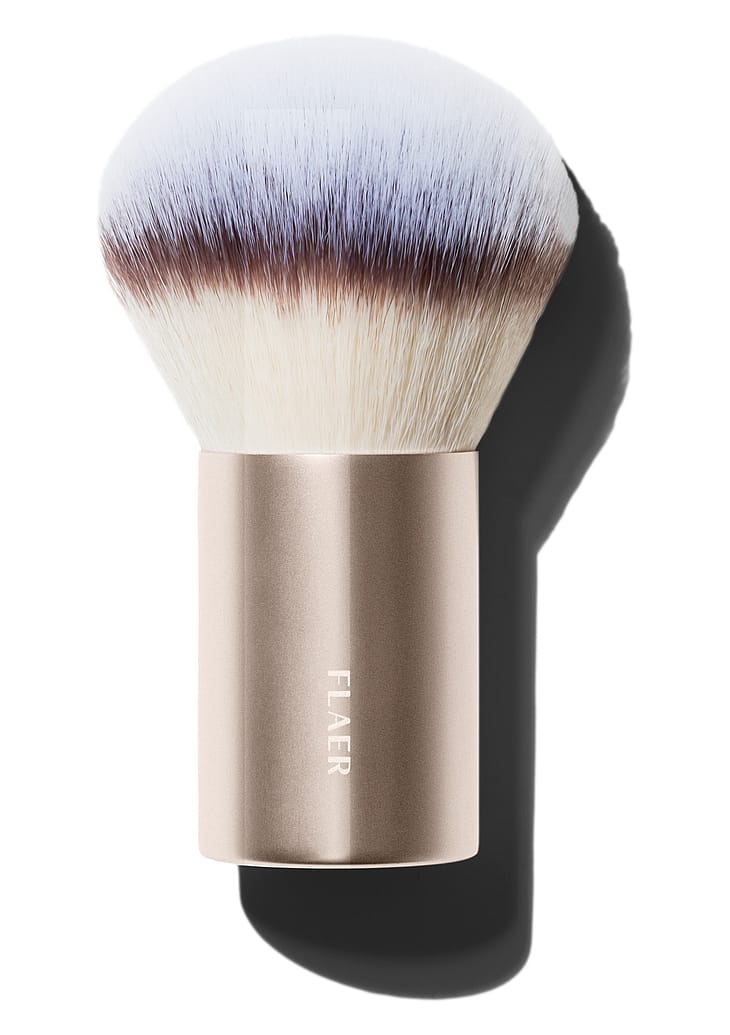 Tästä pyöreästä klassisesta siveltimestä tulee uusi bestiksesi. Puuterit tarttuvat pehmeisiin harjaksiin hyvin. Niiden avulla meikki on myös helppo levittää kasvoille, kaulalle ja dekolteelle. Mahtava sivellin monenlaiseen käyttöön! Kaikki FLAER-siveltimet ovat täysin vegaanisia. Niiden varsi on valmistettu kierrätysalumiinista ja muovista. Innovatiiviset synteettiset harjakset sitovat hyvin sekä puuterimaisia että nestemäisiä tuotteita ja auttavat meikin pehmeässä levittämisessä.