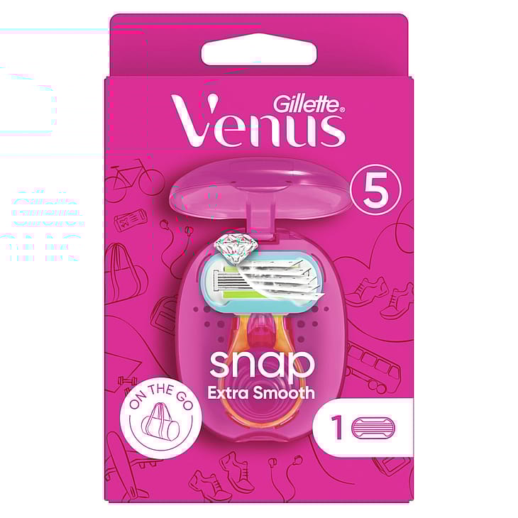 Venus-terät on suunniteltu naisen vartalolle. Naisten Venus Extra Smooth Snap on helposti mukaan otettava, kompakti naisten höylä, jolla ajat tarkasti ja hallitusti. Höylässä on viisi äärimmäisen ihonmyötäisen ajon antavaa terää ja helposti mukana kulkeva minivarsi. Höylän terät leikkaavat karvat ihonmyötäisemmin antaen pitkäkestoisemman sileyden. Vaihtoterän vedellä aktivoituva kosteusnauha auttaa suojaamaan haavoilta ja nirhaumilta. Kaikki Venus-terät sopivat kaikkiin Venus-höyliin (poikkeuksena Simply Venus ja häpyalueelle tarkoitettu Venus-höylä).