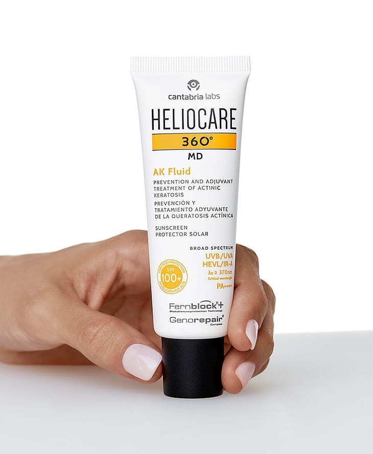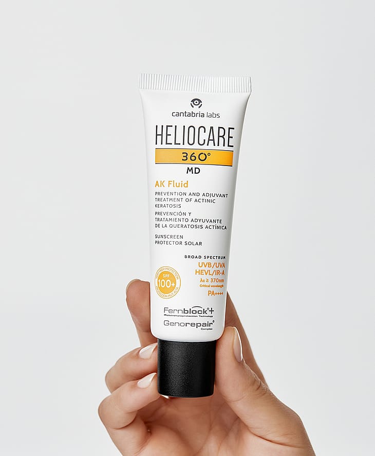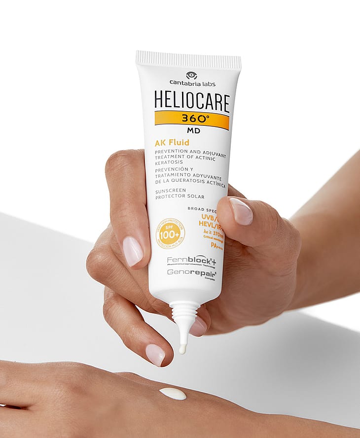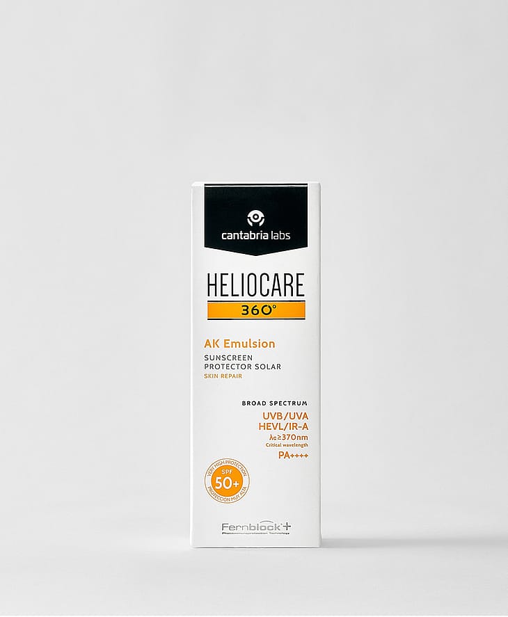 The Heliocare 360º AK Fluid is a very high factor, full spectrum sunscreen designed to prevent UV damage for the most sensitive of skins. Made with anexclusive combination of ingredients for the prevention and treatment of actinic keratosis and non-melanoma skin cancer, this lightweight fluid contains powerful antioxidants alongside GenoRepair Complex, a trio of DNA repair enzymes that work by activating the three mechanisms of DNA repair, to effectively reverse sun damage. Added specialist ingredient Fernblock provides high level antioxidant protection, while also normalizing skin barrier function to create a more comfortable feeling complexion. Provides SPF100. Prevents DNA and UV damage. Non-comedogenic formula. SKIN THERAPIST TIPSupport your topical sun protection product with Heliocare's oral 360º Capsules which work to defend your skin from within.