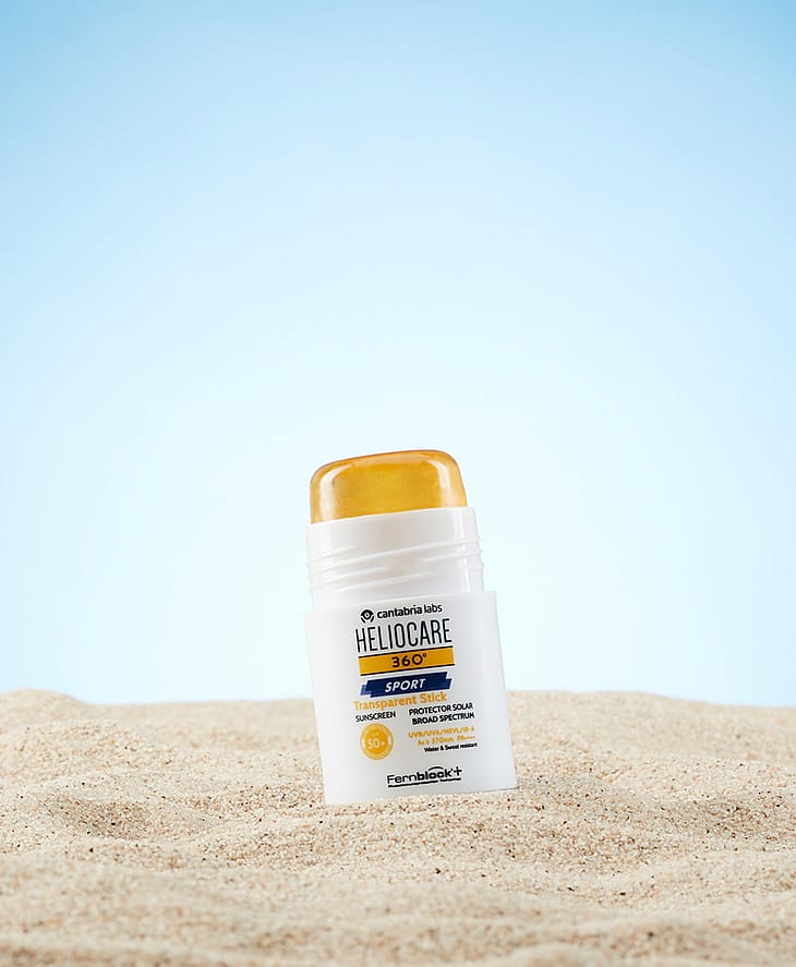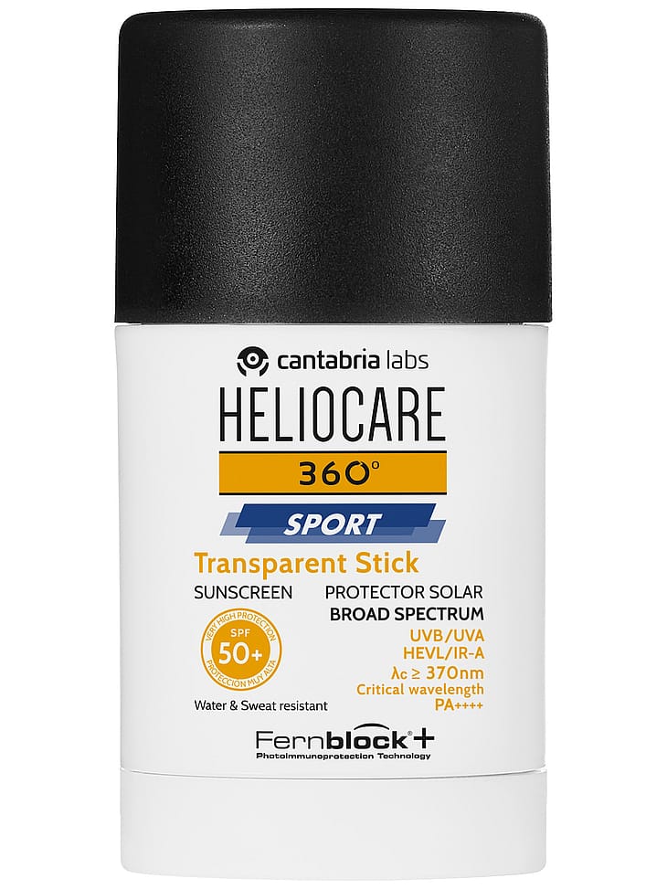 Heliocare 360° Sport Stick on kätevä puikko aurinkosuojan nopeaan levittämiseen ilman tahmaa. Läpikuultava puikko kulkee näppärästi mukana, ja sillä on helppo parantaa aurinkosuojaa päivän aikana. Yksi kerros antaa riittävän suojan. Koostumus on dermatologisesti ja oftalmologisesti testattu (voi käyttää silmien lähellä), ja se sopii kaikenikäisille ja kaikille ihotyypeille, myös herkälle iholle.