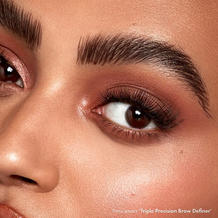 Triple Precision Brow Definer yhdistää tarkan ohutkärkisen kulmakynän, kulmakarvatussin ja kulmakarvaharjan, joilla saat hoitolatasoiset kulmat kotona, joka päivä.